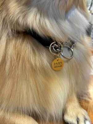 輪に広げた最大内周は約37㎝で、とら吉くんが使っている首輪よりも大きかったため、とら吉くんの首輪に近いサイズになるようチェーン長さを変更する形でご提案させて頂きました。