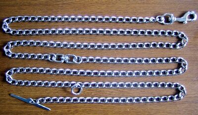 短い鎖で常にピンと張った状態だと鎖の重さのかなりの部分がワンちゃんの首輪に掛かってきますが、長い鎖の場合には、実際に首輪に掛かってくる負担は地面からワンちゃんの首付近までの鎖とナスカンの重さだけなので、中型犬の体高だと最大でも200g位迄で収まるかと思います。